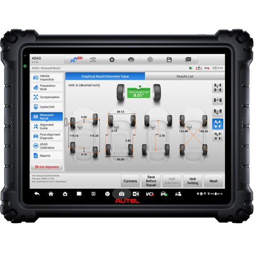 Gå ud over grundlæggende målinger af camber, caster og sporing, og visualisér alle måledata – herunder detaljeret thrust-vinkel, SAI, toe-out ved drejning og meget mere. Diagnosticér problemer med rammejustering, justering af motorramme, bøjede komponenter, løse dele og meget mere.