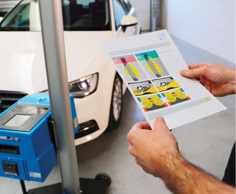 Analysen er samlet i en før- og efterdiagnoserapport. Det garanterer forlygternes korrekte indstilling og forbedrer førerens sikkerhed.