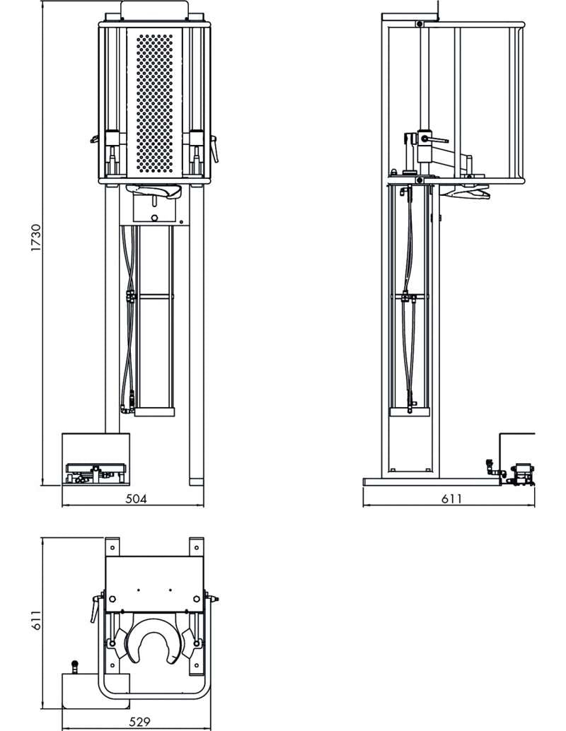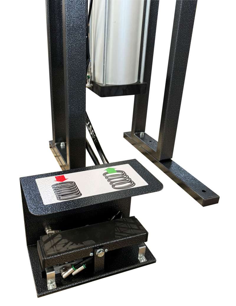 Denne pneumatiske fjederkompressor er en komplet arbejdsstation (2,5 ton) til professionel håndtering af spiralfjedre. Maskinen er udviklet med fokus på sikkerhed, hastighed og ergonomi – og især ALS Auto Leveling System gør en markant forskel i hverdagen.