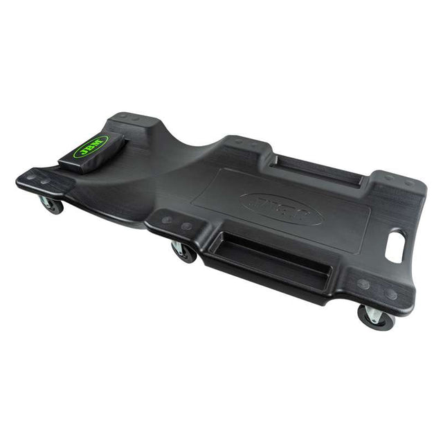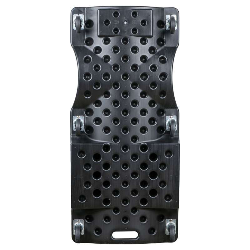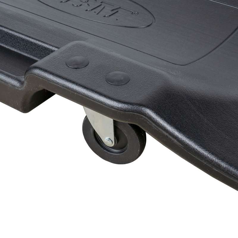 Robust og komfortabel mekanikervogn i PE-plast med 360° drejehjul, hovedstøtte og to sidebakker. Perfekt til arbejde under bilen. Kapacitet: 150 kg.