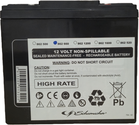 Schumacher BATTERY 12V - 800A - for Micro SOS & PPS 12V/800 & SOS 12/24V-1600/800CA