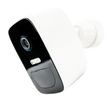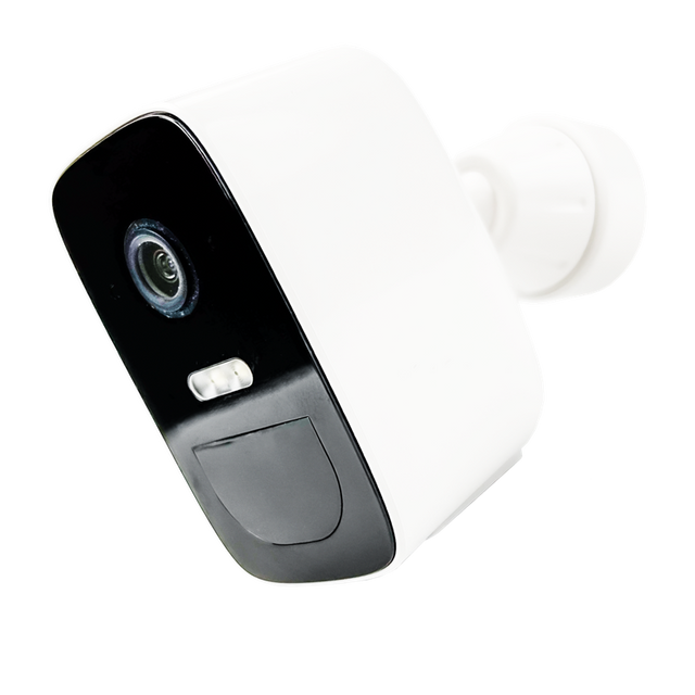 - Kameraet har indbygget genopladeligt batteri, som oplades med USB-C kabel. Batteritiden er afhængig af brug og temperatur. Aktuel batteristatus kan aflæses i appen, ligesom du kan få en push-advarsel ved lavt strømniveau.