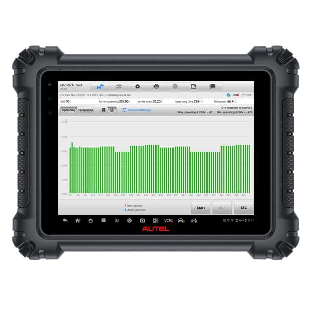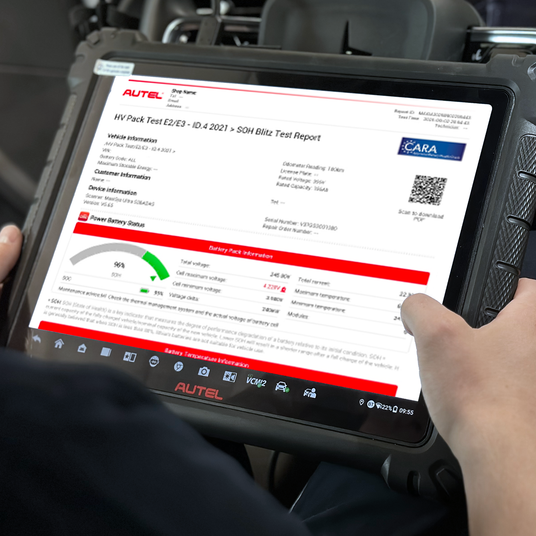 På få minutter får du en rask og presis oversikt over batteriets tilstand ved å lese ut data direkte fra bilens system via din Autel-tester.