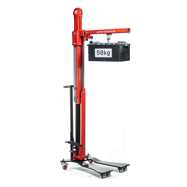 Ergonomisk enmandsløsning til håndtering af tunge batterier (op til 60 kg). Sikker, stabil og let at manøvrere – ideel til flåde- og værkstedsbrug.