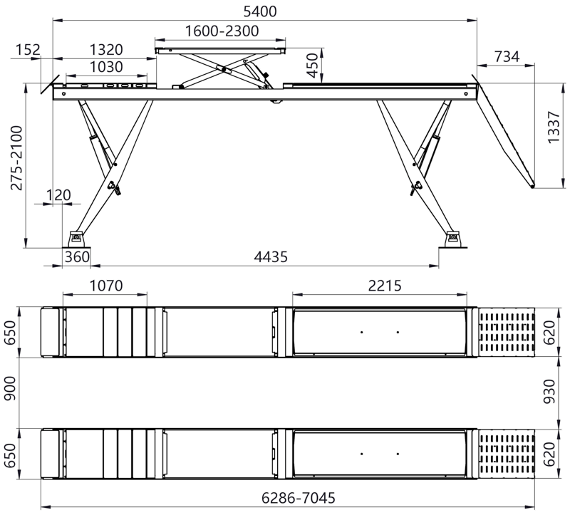 - Denne lift er i W-design, hvilket betyder at hver kørebane er understøttet på 4 punkter, som dermed giver optimal styrke og plathed ved længere og tungere køretøjer.