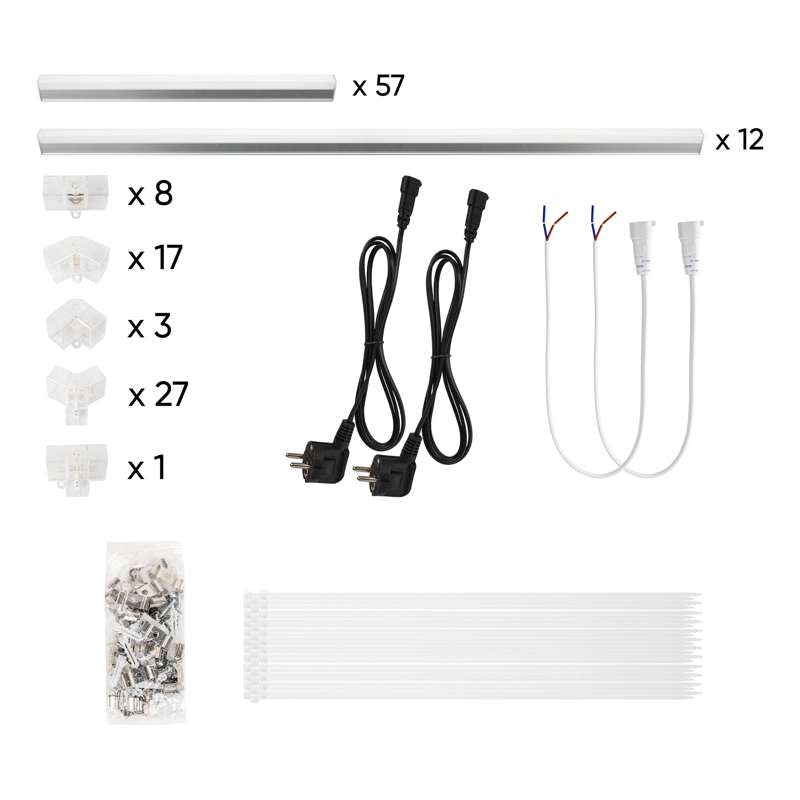 LED-rør (antal/længde): 12 × 1175 mm (lange) + 57 × 440 mm (korte)