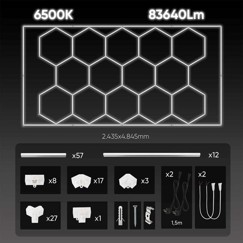 Hexagon LED lys-sæt (honeycomb) – kraftig, ensartet belysning til værksted og garage